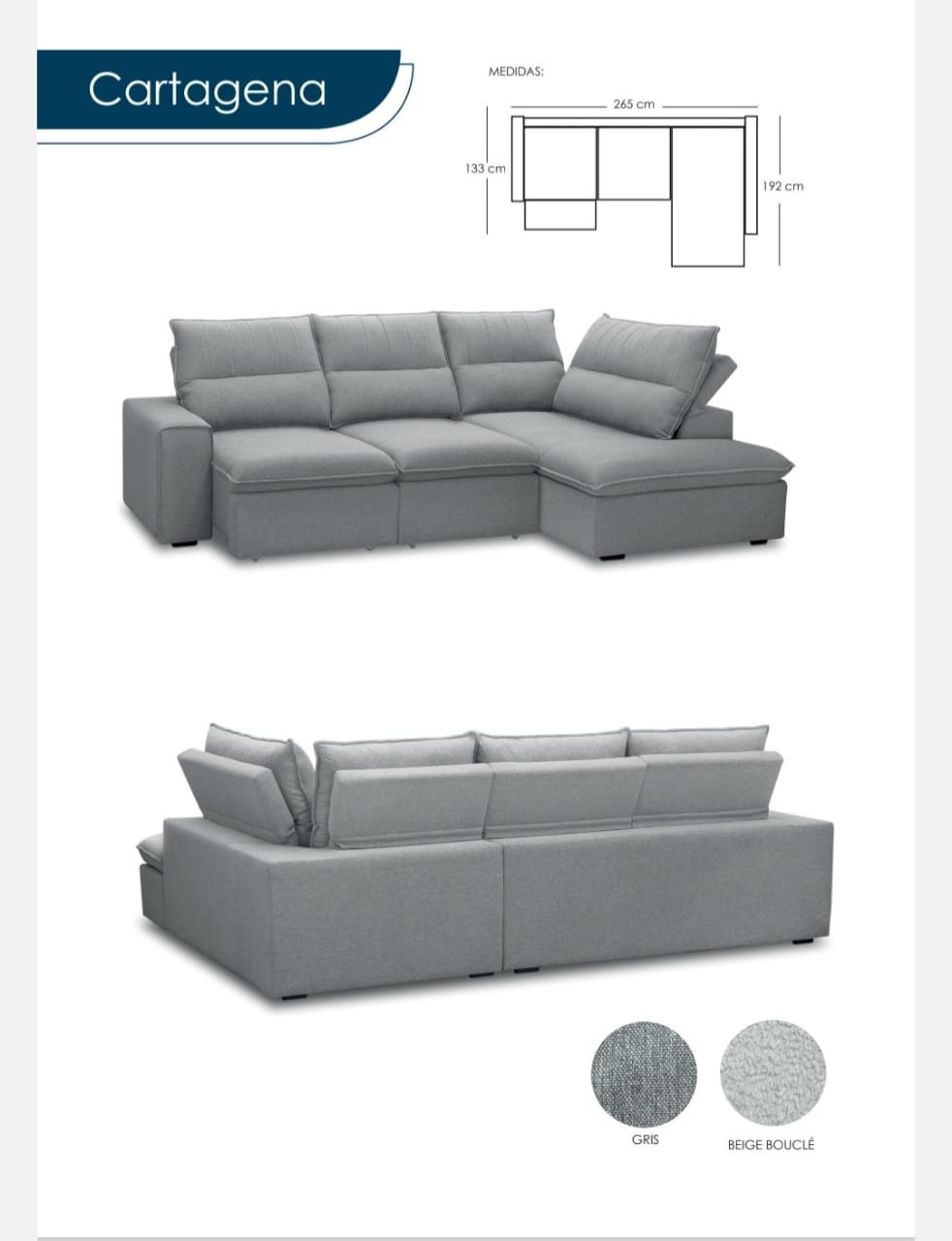 ✅ Medidas: 265 cm (ancho) x 192 cm (fondo chaise longue) x 133 cm (fondo sofá)