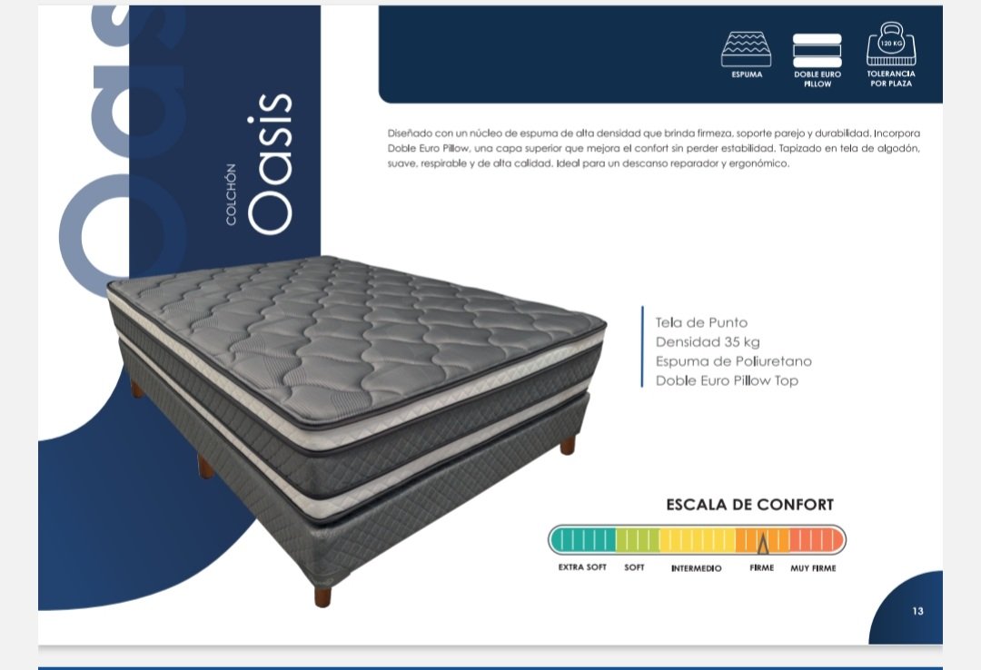 Características del colchón: Diseñado con un núcleo de espuma de alta densidad que brinda firmeza, soporte parejo y durabilidad. Incorpora Doble Euro Pillow, una capa superior que mejora el confort sin perder estabilidad.